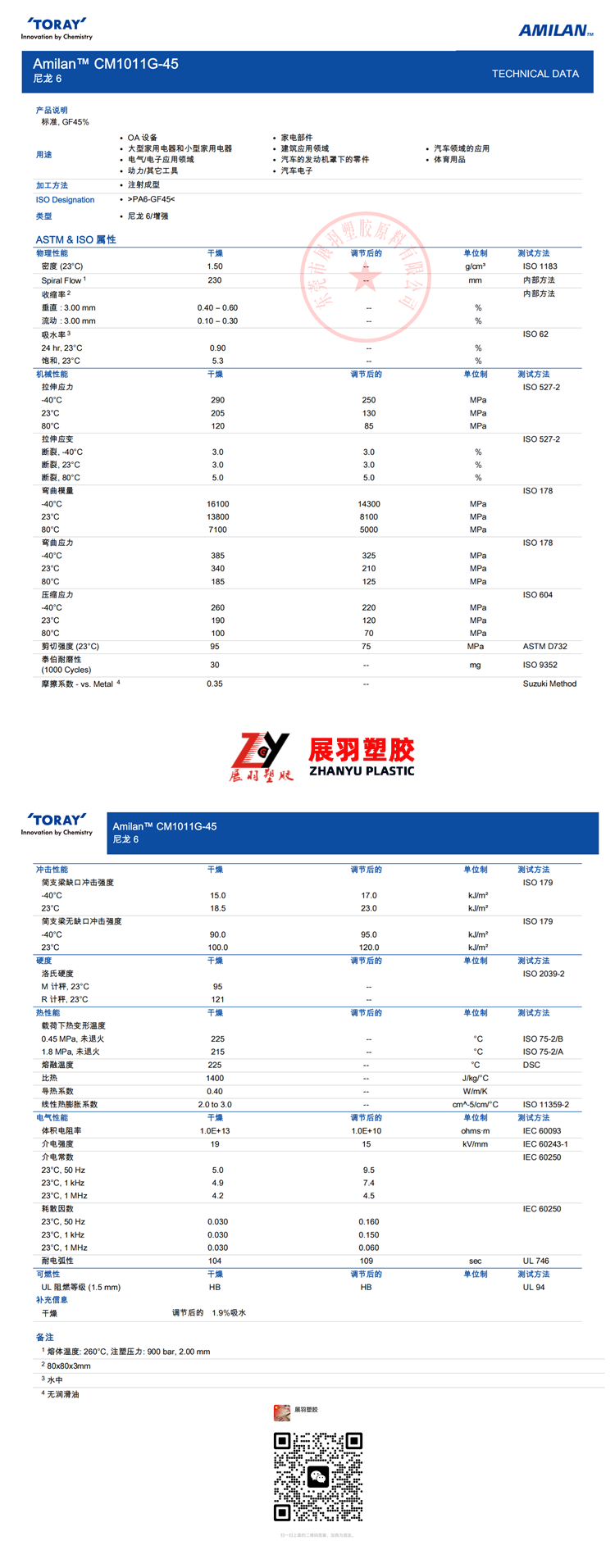 PA6 東麗 Amilan CM1011G-45 尼龍6玻纖增強(qiáng)GF45% 電器組件 電子電器應(yīng)用