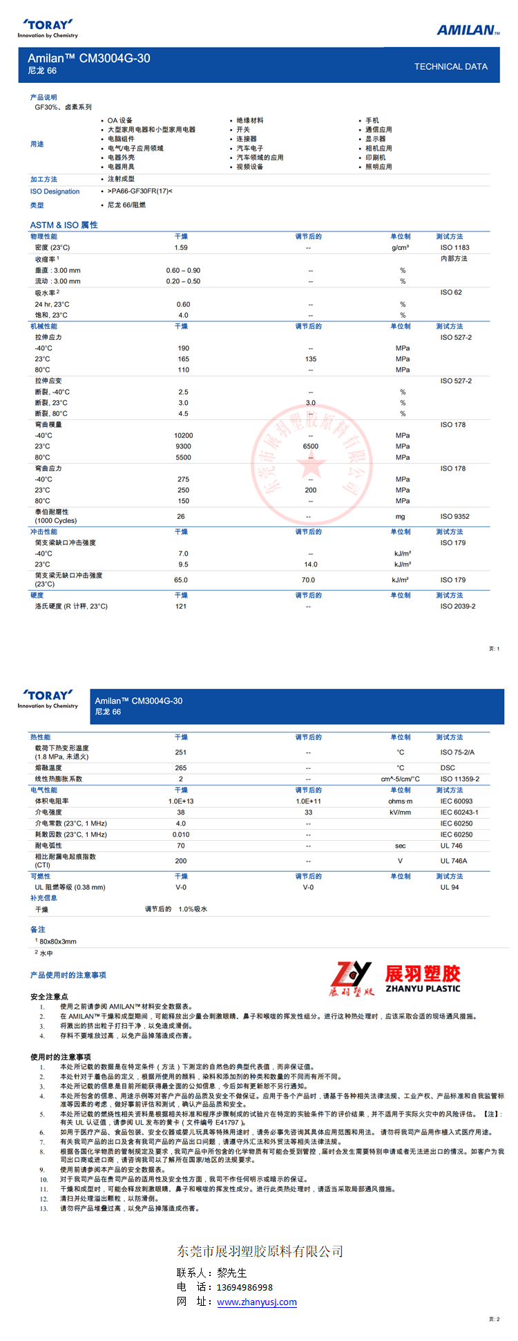PA66 東麗 Amilan CM3004G-30 玻纖增強30% 鹵素阻燃V0 汽車領域 家電應用