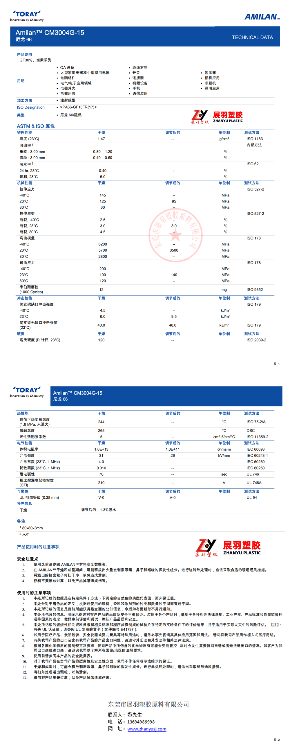 PA66 東麗 Amilan CM3004G-15 玻纖增強(qiáng)GF30% 尼龍66鹵素阻燃系列