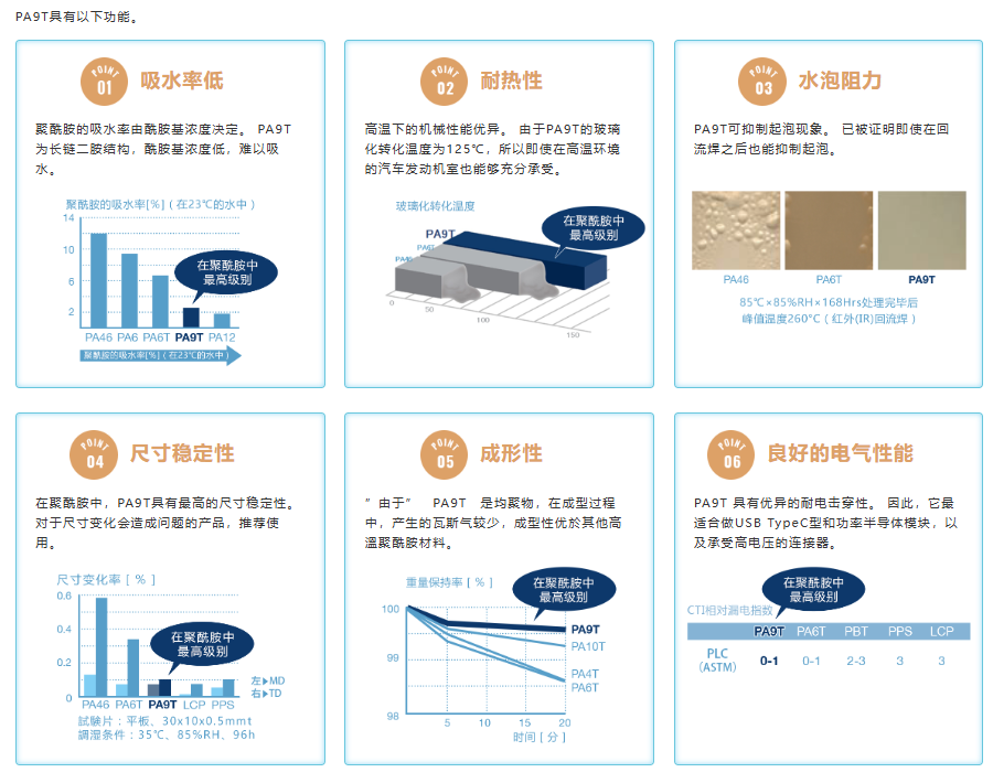 它的應用范圍從電氣到汽車零部件。它為氟聚合物、PPA(PA6T、PA4T、PA10T)、PA46、PPS和LCP等傳統(tǒng)材料提供了優(yōu)越的性價比替代品。