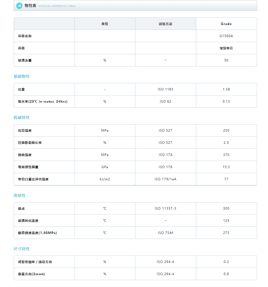 可樂麗 Genestar? PA9T G1500A >PA9T-GF50< 阻燃等級(jí): HB 缺口沖擊: 17 kJ/m2 熔融溫度: 300 °C