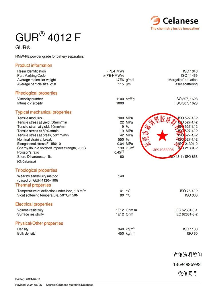 塞拉尼斯 GUR 4012 F 超高分子量聚乙烯 電池隔膜用 UHMWPE 粉末級(jí)